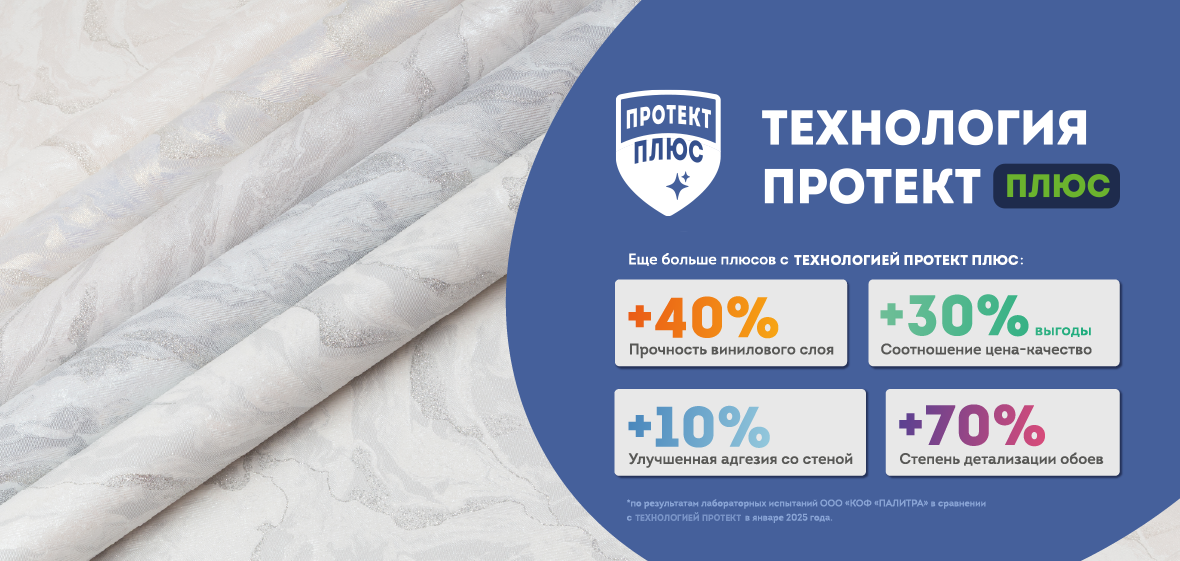 Фабрика «ПАЛИТРА» представляет передовую технологию производства обоев горячего тиснения ПРОТЕКТ ПЛЮС, которая переосмысливает привычные стандарты качества, дизайна и стиля. Эта разработка открывает новые горизонты для создания красивых и стильных обоев с детально проработанным рельефом и объемной фактурой. ПРОТЕКТ ПЛЮС — это не просто обои — это искусство, воплощенное в оформлении интерьера.