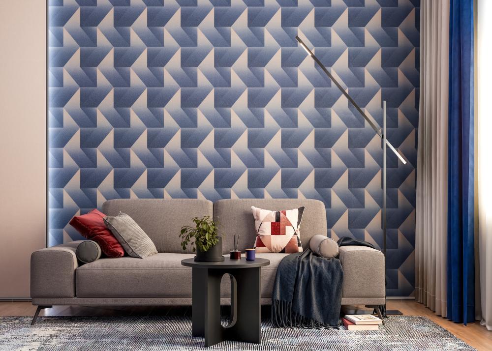 Настенные обои в современном стиле на бумажной основе PALITRA LIFE HC72264-62 Вау-Эффект / Wow Effect синие метровые с абстрактным рисунком для коридора, гостиной, спальни