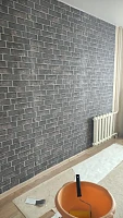 Это отличные обои, выделила стену под телевизор, просто чудесно клеятся, чуть подгоняли кирпичики, это было не сложно